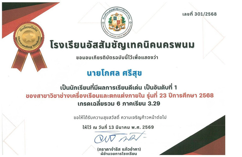 ยินดีด้วยอย่างยิ่งกับ น้องโกศล ศรีสุข สมาชิกของครอบครัวมูลนิธิสงเคราะห์เด็ก พัทยา ที่สำเร็จการศึกษาระดับ ปวช. จากโรงเรียนอัสสัมชัญเทคนิค นครพนม ประจำปีการศึกษา 2568 โดยได้รับรางวัลเกียรติยศ “นักเรียนดีเด่น อันดับที่ 1” ของสาขาวิชาช่างเครื่องเรือนและตกแต่งภายใน ด้วยคะแนนเฉลี่ยสะสม 3.29 ตลอดหลักสูตร 6 ภาคเรียน ความสำเร็จในครั้งนี้สร้างความภาคภูมิใจให้กับพวกเราทุกคนเป็นอย่างมาก และขอขอบพระคุณคณะภราดา รวมถึงบุคลากรทางการศึกษาทุกท่านที่เมตตาอบรมสั่งสอนและมอบโอกาสทางการศึกษาให้กับน้องโกศลเสมอมา.. ขอเป็นกำลังใจให้ประสบความสำเร็จในก้าวต่อไปของชีวิตครับ/ค่ะ..