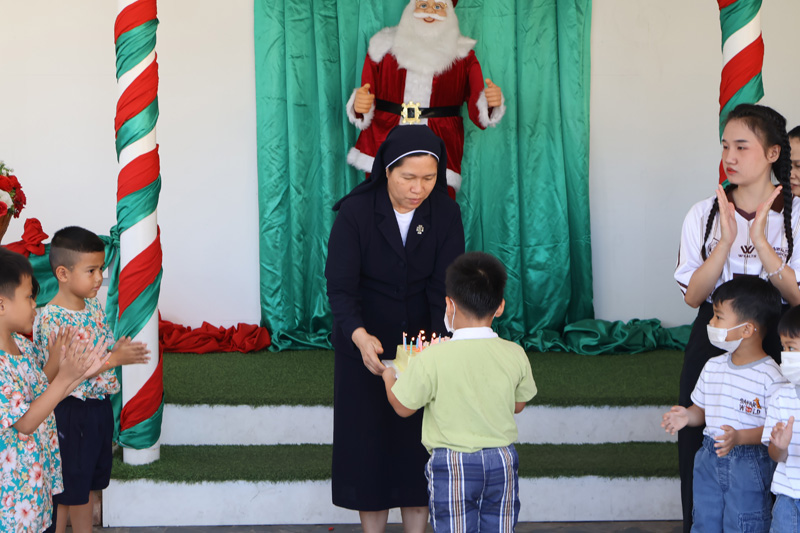 โอกาสวันคล้ายวันเกิดซิสเตอร์มารีอา รพิพรรณ สวัสดิการ หัวหน้าแผนกโภชนาการ ของมูลนิธิสงเคราะห์เด็ก พัทยา โดยมีซิสเตอร์สุพัตรา นนทสุวรรณ์ คุณแม่อธิการ นำสมาชิกในบ้านเด็กกำพร้า พัทยา และโรงเรียนอนุบาลโสตพัฒนา ทั้งเด็ก ๆ และบุคลากร ร่วมมอบความปรารถนาดีและแสดงความยินดีกับท่านเจ้าของวันเกิดในบรรยากาศที่เปี่ยมด้วยความสุข.. ขอพระพรจากพระเป็นเจ้าโปรดประทานความชุ่มเย็น ประทานสุขภาพกายและใจที่เข้มแข็งให้แก่ซิสเตอร์เสมอไปครับ/ค่ะ