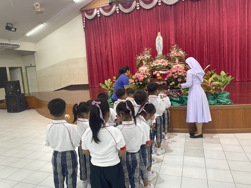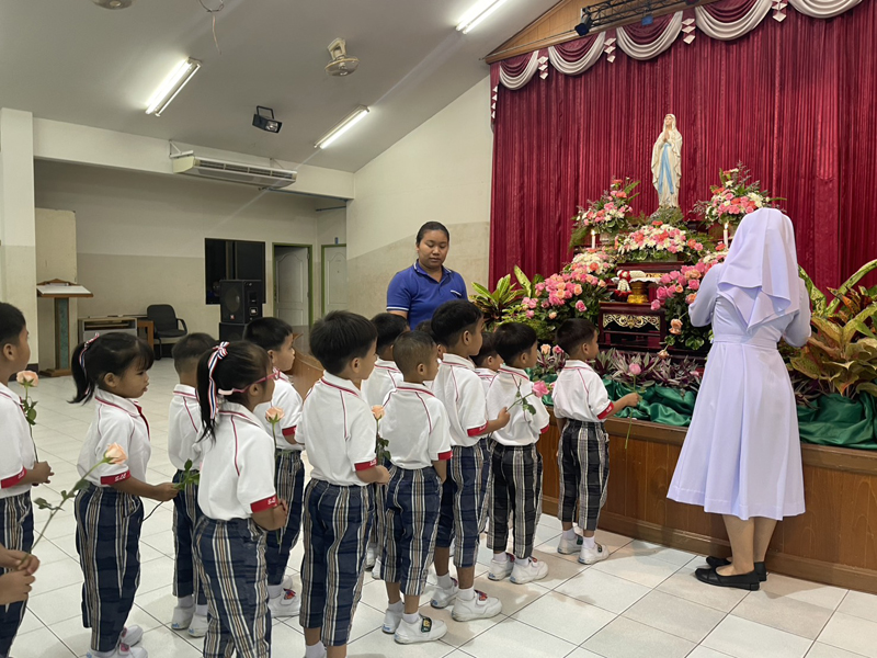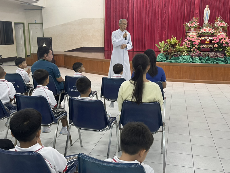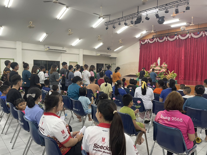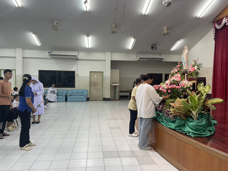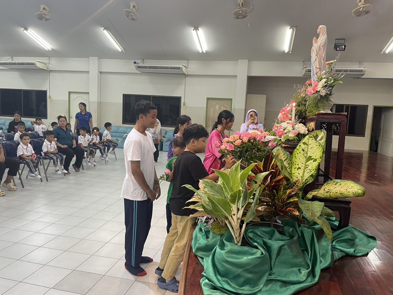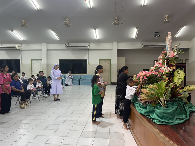 โอกาสเดือนแห่งการสวดสายประคำ ตุลาคม 2568 สมาชิกในบ้านเด็กกำพร้า พัทยา และโรงเรียนอนุบาลโสตพัฒนา ร่วมกันถวายเกียรติแด่แม่พระ และภาวนาอย่างมีสมาธิในภาคค่ำตลอดเดือน โดยขอพระแม่มารี เสนอวิงวอนเพื่อสุขภาพและความปลอดจากโรคภัยของทุกคนในบ้าน ครอบครัวของแต่ละคน และบรรดาผู้มีอุปการคุณทุกท่าน รวมถึงผู้ที่จากไปแล้ว ตลอดจนความสงบสันติในโลกของเรา