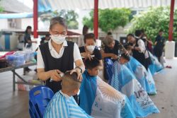 ..อาจารย์นิพนธ์ มวญนรา และคณะจากโครงการส่งเสริมพัฒนาอาชีพ สำนักสวัสดิการสังคม เมืองพัทยา ร่วมกับนักเรียนโรงเรียนผู้สูงอายุ เมืองพัทยา รุ่น 3 สำหรับการให้บริการตัดผมกับน้อง ๆ เด็กกำพร้าวัยเรียน และผู้พิการชาย ในความดูแลของมูลนิธิสงเคราะห์เด็ก พัทยา โดยมีคุณคุณสุปราณี ชัยวิมล เป็นผู้ประสานงาน.. ขอบคุณทุกท่านครับ/ค่ะ..