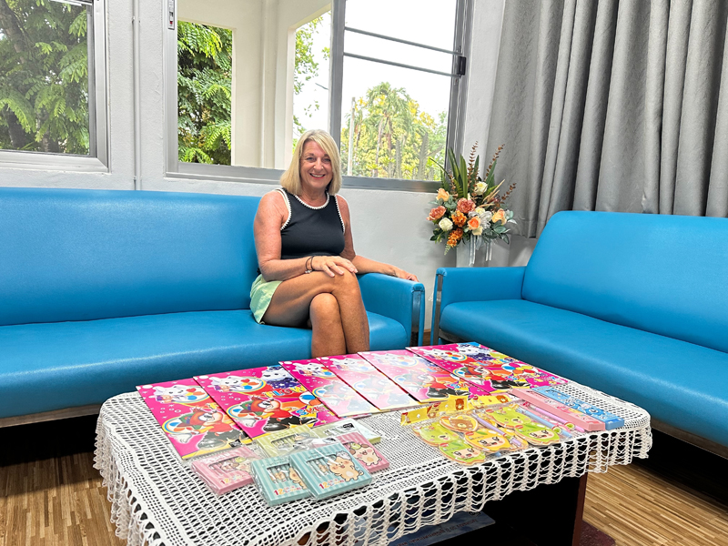 ..Mrs. Yvonne Gurney ชาวอังกฤษ สำหรับการทำความรู้จักกับมูลนิธิสงเคราะห์เด็ก พัทยา ด้วยความสนใจจะช่วยงานของเราในปีหน้า พร้อมกับ Mr. Jeff ผู้สามี ในขณะที่ลูกสาวมาเป็นครูสอนในโรงเรียนนานาชาติแห่งหนึ่งในพัทยา นอกจากนี้ ยังได้บริจาคเครื่องเขียน สนับสนุนด้านการศึกษาของน้อง ๆ เด็กกำพร้าและผู้พิการวัยเรียน.. ขอบคุณครับ/ค่ะ..