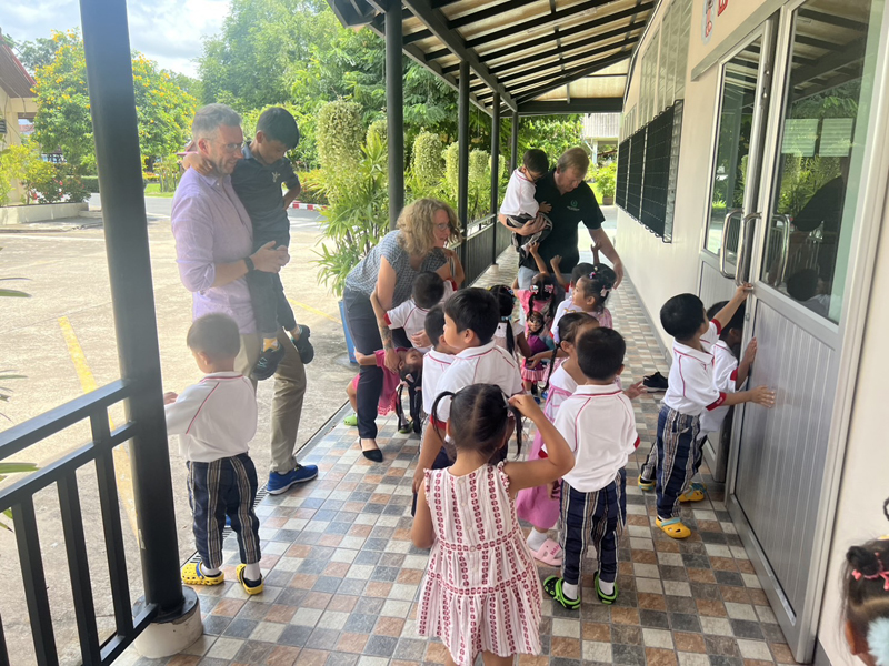 ..ครอบครัวชราเม็ค จากประเทศสวิตเซอร์แลนด์ พร้อมด้วยเด็กชายแพดี้ วัย 7 ขวบ สำหรับการกลับมาเยี่ยมเยือนมูลนิธิสงเคราะห์เด็ก พัทยา ครั้งแรก หลังจากได้รับลูกชายบุญธรรมไปเมื่อสองปีก่อน การทักทายอดีตผู้ดูแลและน้อง ๆ รุ่นอนุบาล ตลอดจนการนำขนมแลช็อคโกแลตมาแบ่งปันให้กับเด็ก ๆ.. ขอบคุณทุกท่านและขอให้มีความสุขกับการพักผ่อนในเมืองไทยครับ/ค่ะ..
