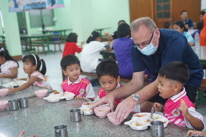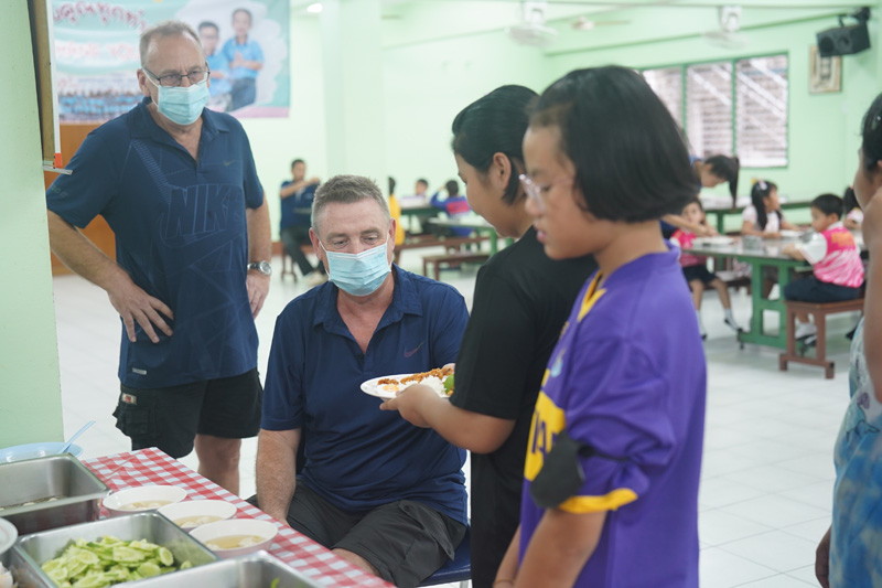..คุณ Thomas Scott Reilly ผู้มีอุปการคุณของบ้านเด็กกำพร้าพัทยา พร้อมด้วยคุณ Ken Allday ซึ่งเคยมาเยี่ยมเยือนเราแล้ว สำหรับการทำบุญอุทิศให้คุณ Scott Deas เพื่อนในประเทศสกอตแลนด์ ซึ่งเสียชีวิตเมื่อต้นเดือนกรกฎาคม 2568 ในโอกาสครบ 100 วัน ด้วยการเป็นเจ้าภาพเลี้ยงอาหารมื้อกลางวันให้กับน้อง ๆ และผู้พิการในวันนี้.. ขอขอบคุณทั้งสองท่าน และขอให้ผู้จากไป ได้พักผ่อนในสวรรค์นิรันดร ตลอดจนครอบครัวได้รับความบรรเทาใจ และมีความเข้มแข็งครับ/ค่ะ..