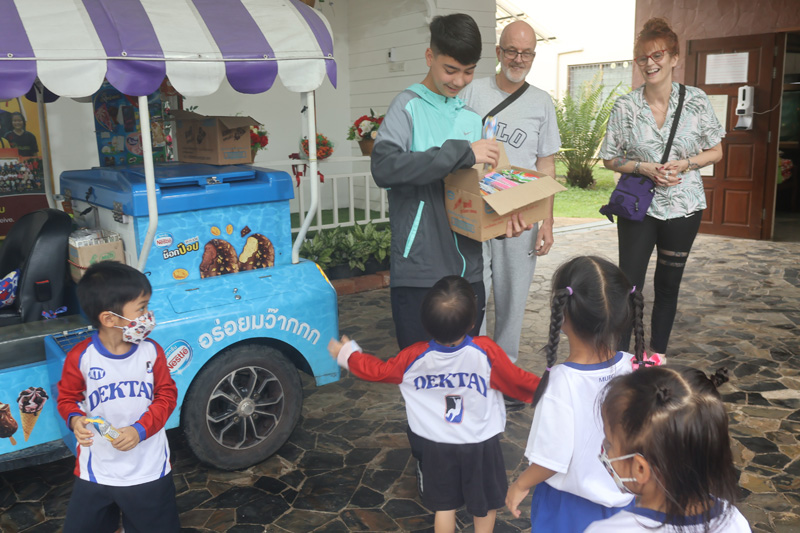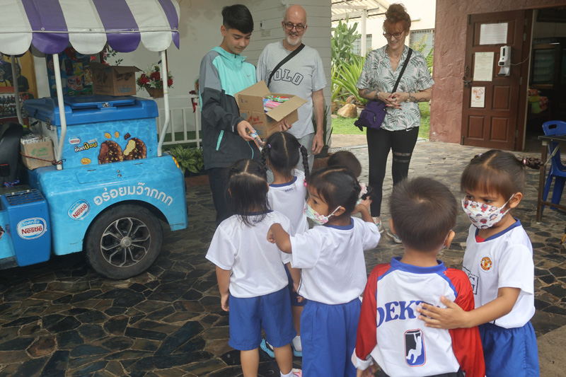 ..ครอบครัวของคุณ Elizabeth Miller รวมถึงคุณ James และเด็กชาย Jamie Marshall สำหรับการทำบุญที่บ้านเด็กกำพร้า พัทยา อีกครั้งหนึ่ง ด้วยการเป็นเจ้าภาพเลี้ยงไอศกรีมแท่งเป็นอาหารว่างให้กับน้อง ๆ เด็กกำพร้าตั้งแต่รุ่นเตาะแตะขึ้นไป และผู้พิการในความดูแลของเรา.. ขอบคุณทุกท่านครับ/ค่ะ..