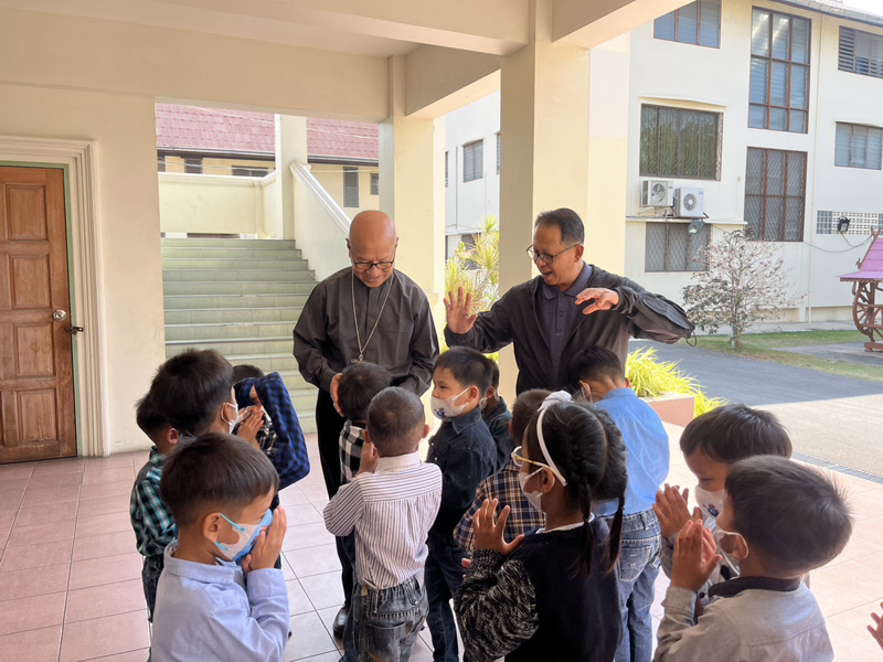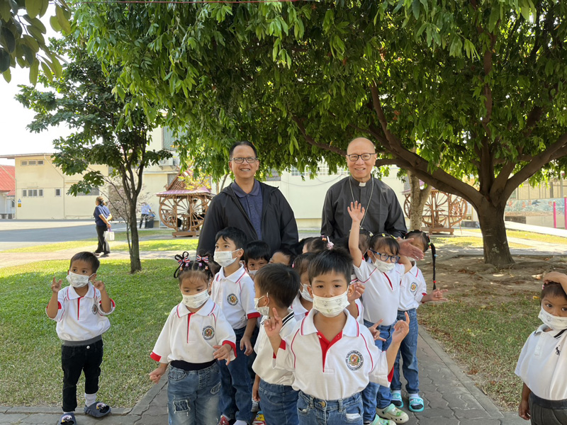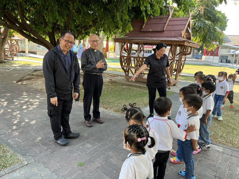 ..Bishop Marco Tin Win พระสังฆราชคาทอลิกจากประเทศสาธารณรัฐแห่งสหภาพเมียนมา นำโดยคุณพ่อ ยอแซฟ ธรรมรัตน์ เรือนงาม อธิการสามเณราลัยพระหฤทัยแห่งพระเยซูเจ้า ศรีราชา สำหรับการเยี่ยมเยือนมูลนิธิสงเคราะห์เด็ก พัทยา การทำความรู้จักกับงานของเรา ตลอดจนการทักทายน้อง ๆ รุ่นอนุบาล.. ขอขอบคุณและขอพระอวยพรทั้งสองท่านครับ/ค่ะ..