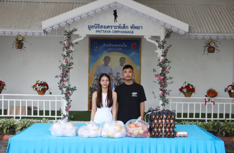 ..Mr. Rangsiman Chantanasoth and Ms. Kanyaphat Yailam from Sattahip, for making merit at the Pattaya Orphanage during their first visit, contributing fresh fruits and chicken eggs in support of the nutrition of children and disabled persons in our care.. Thanks and best wishes to both of you..