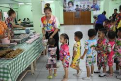 ..Mr. Luc Laureys, for making merit in memory of his late mother Astrid on her anniversary of passing with a dinner sponsorship for children and disabled persons at the Pattaya Orphanage.. Diners from toddler’s age and older, offered their thanks to Khun Luc and prayed for the eternal repose of his loving mother..