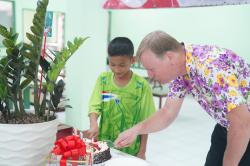 ..Mr. Bernard Mueller, the wonderful friend and benefactor of the Pattaya Orphanage and Sotpattana School, for celebrating his 60th birthday anniversary and marking the recent 11th birthday for young Jean with a great dinner sponsorship for all our members from toddler’s age and older.. This meal is the 1000th sponsored by Khun Bernard and his friends since 2016, the first day he started visiting our home.. Many thanks and many happy returns of the day to our benefactor.. Belated birthday greetings to Jean.. May both of you be blessed with excellent health and the continued love by all around you..