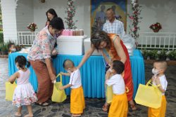 ..The party of Mary Nuanchan Chanthammit from Bangkok, along with members of the Vongnipon Family, including Ms. Chutima, Mr. Anan, and Mrs. Sudaphan Vongnipon-Bottu, for making merit in memory of Mr. Alain Bottu with another visit to the Pattaya Orphanage and supporting children as well as disabled persons with refreshments and education fund.. May your loved one rest in peace.. Thanks and best wishes to all of you..