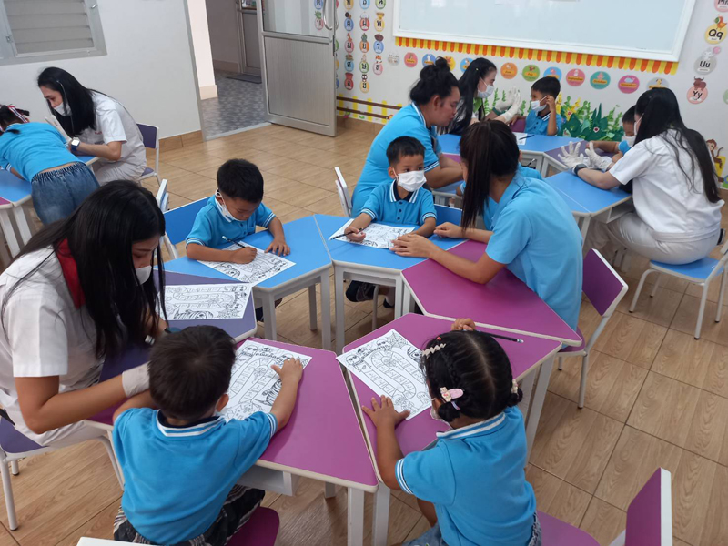 ..The party from Ricoh Manufacturing (Thailand) Co., Ltd., from Rayong province, for their continued support of the Pattaya Orphanage through another visit. During their visit, getting to know our home, learning some basic signs from representatives of Sotpattana School for the Deaf. Our guests organized recreational fun activities for the preschool kids.. Additionally, they took part in planting vegetables, renovating with painting plant pots, cutting grass, and beautifying our compound.. Thanks and best wishes to everyone involved..