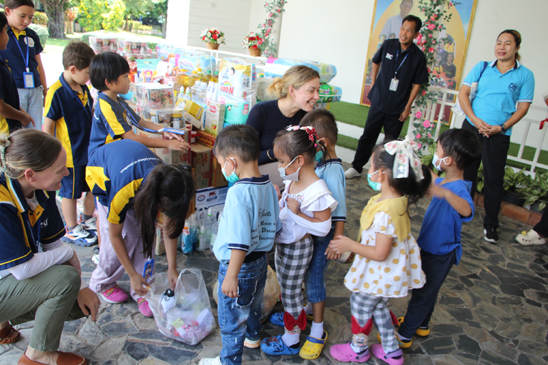 ..The party of students and teachers of the International School of Chonburi (ISC) for holding an activity at the Pattaya Orphanage once again, getting to know our home, joining the Open House “Small but Beautiful” of Sotpattana School for preschoolers with disabilities.. Our guests also donating various necessities, including baby care products and handing of snacks for kids from preschool age and older.. Thanks and best wishes to all of you..