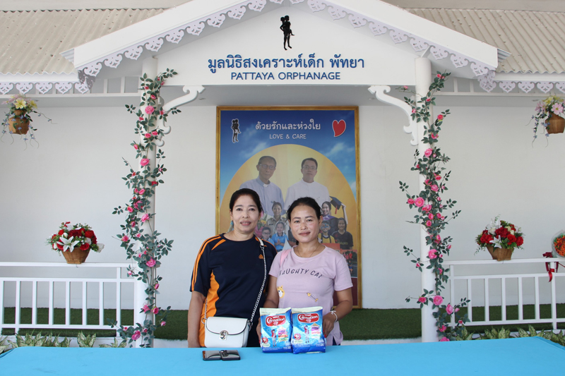 ..Ms. Deang Pomsopha and her folk, for making merit at the Pattaya Orphanage during their first visit with a donation of various necessities, including baby formula, and cash for our collection box in support of our daily care for children as well as disabled persons.. Thanks and best wishes to both of you..