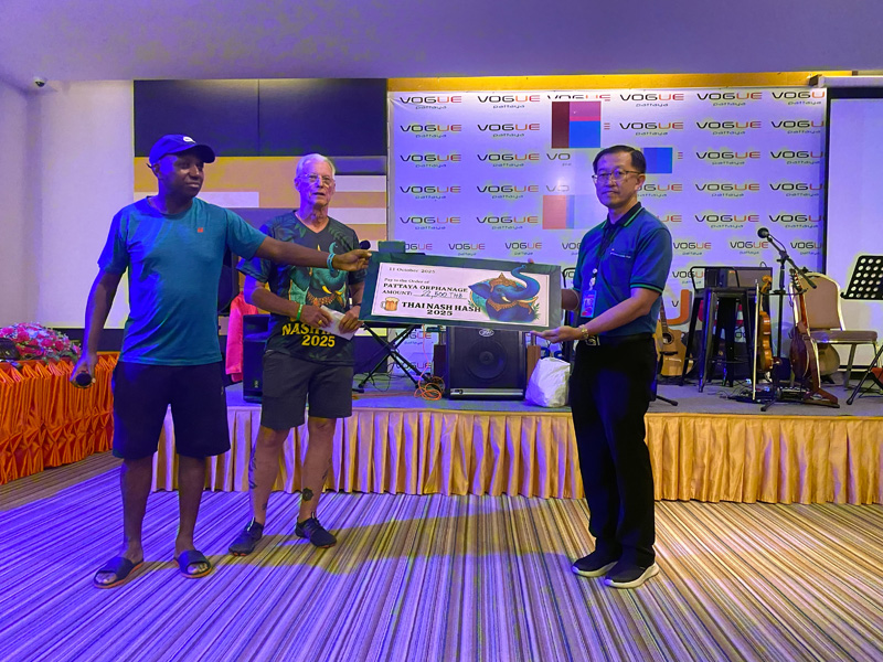 ..The Thai Nash Hash Group, coordinated by Khun Eric, for supporting children at the Pattaya Orphanage with a generous donation of THB 22,900 following their 3-day event with the 2025 Hash Run at Khao Mai Kaew.. Our representatives: Paul Somkiat Potiverayut and Siam Jitbunjong, were present at the gala dinner held at Vogue Hotel Pattaya and expressed our sincere thanks to all the donors.. May all of you be blessed in abundance..