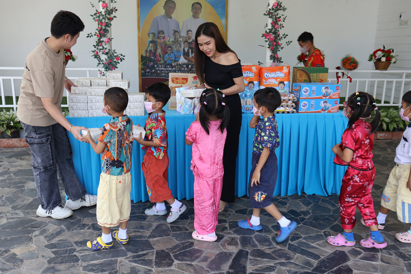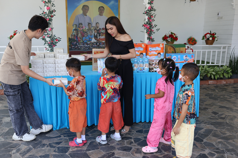 ..Ms. Suchada Deengen and Ms. Nichapha FongPhoti from Banglamung, for making merit at the Pattaya Orphanage with the first visit, a donation of various necessities, including baby care products, the handing of snacks to kids from preschool age and older.. Thanks and best wishes to both of you..