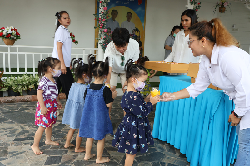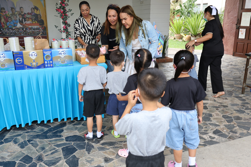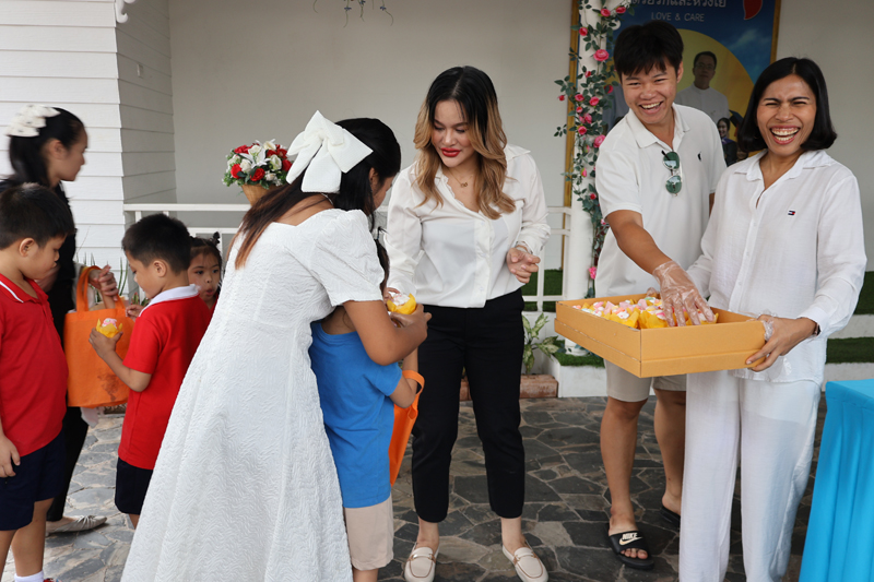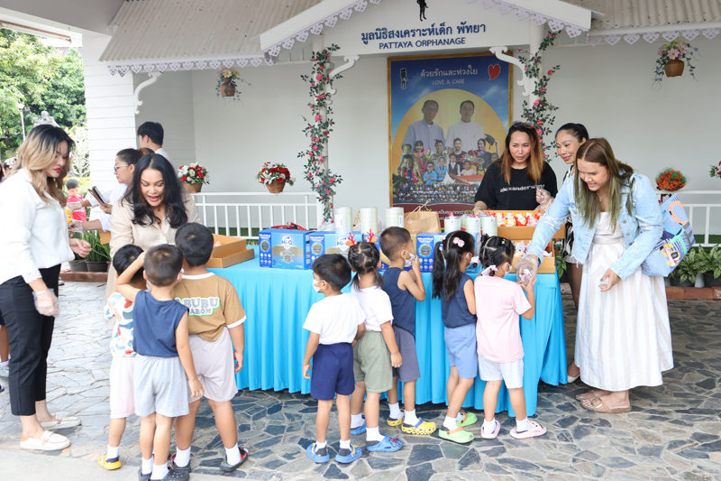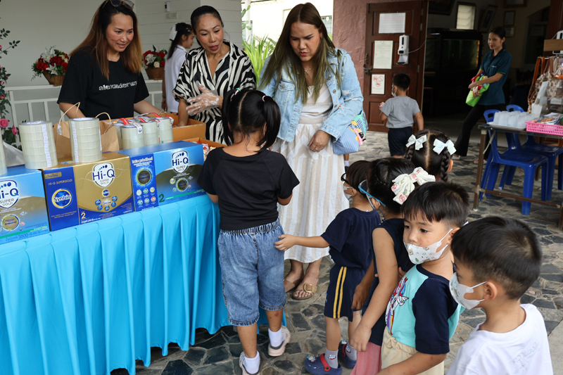 ..The party of Ms. Kanlapimpha Siriwat, Ms. Narisa Taylor, Ms. Kob, Ms. Mind, Ms. Ranchida from Banglamung, for making merit at the Pattaya Orphanage once again, with a donation of various necessities, including baby care products.. On this occasion, they handed snacks to kids from toddler’s age and older, as well as kindergartners of our Sotpattana School for kids with disabilities.. Thanks and best wishes to all of you..