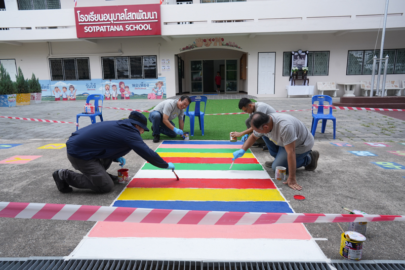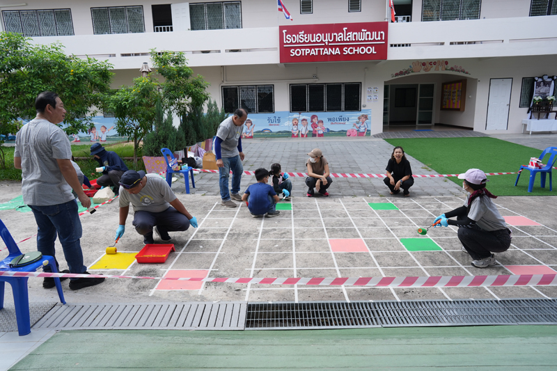 ..The party from Michelin Siam Co., Ltd., Bangkok, for their continued support of the Pattaya Orphanage through another visit, during their visit, getting to know our home, and learning some basic signs from representatives of Sotpattana School for the Deaf.. On this occasion, a donating various necessities, including baby care products and an education fund, installing air conditioning in the free activity center room.. Our guests organized recreational fun activities for the preschool kids and took part in renovating with painting BBL field.. Additionally, the team sponsored a lovely refreshments for kids from toddler’s age and older, along with kindergartners with disabilities.. Thanks and best wishes to everyone involved..