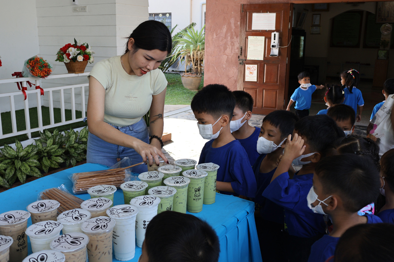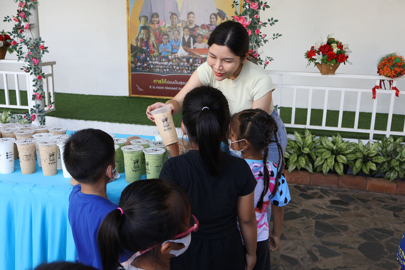 ..Khun Kampanat Kaeyiwa from Banglamung, for making merit at the Pattaya Orphanage during her first visit with a donation of bubble milk tea to kids in toddler’s age and older.. Thanks and best wishes to you..