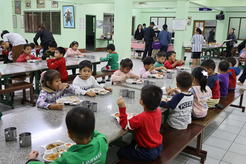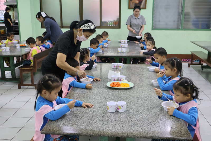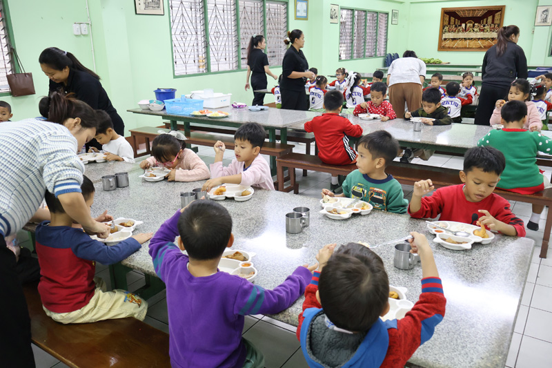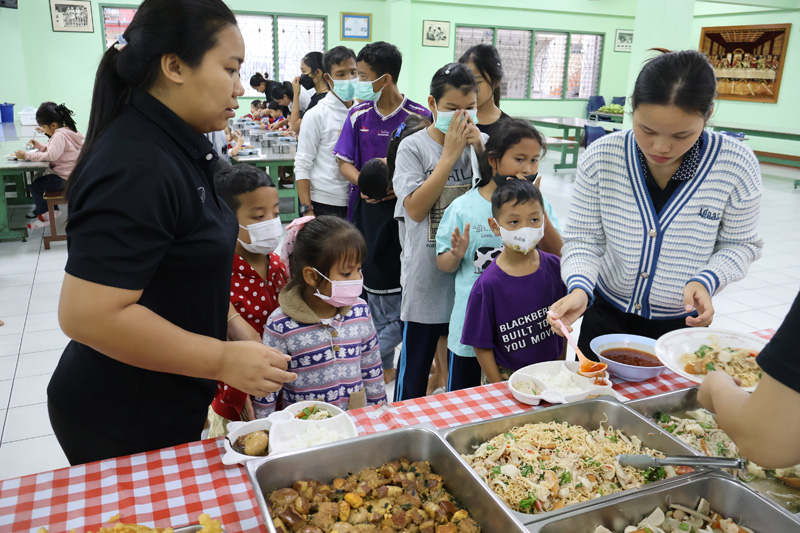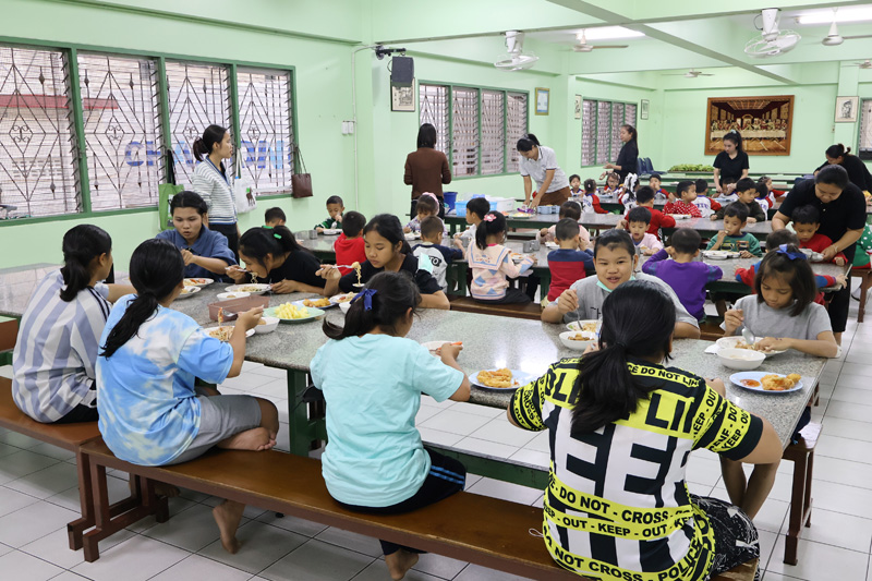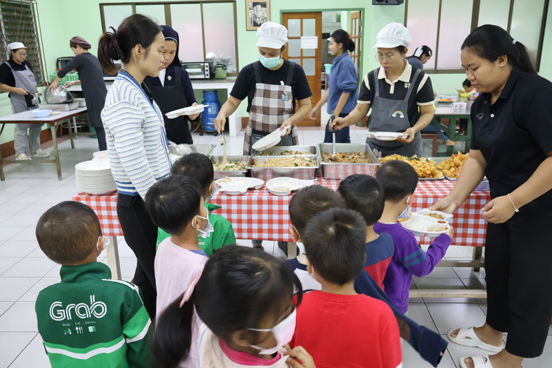 ..Ms. Saowanee Panaram in Seattle, USA, for making merit in memory of the 100-day anniversary of her dear friend’s passing with a dinner sponsorship for children in the care of the Pattaya Orphanage.. The kids from toddler’s age and older, including boarders of our Sotpattana School for preschoolers with disabilities enjoyed the lovely meal, thanked the sponsors, and prayed for the peaceful repose of the departed..