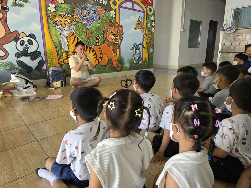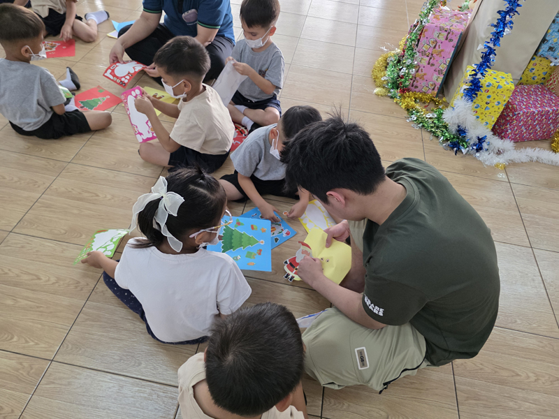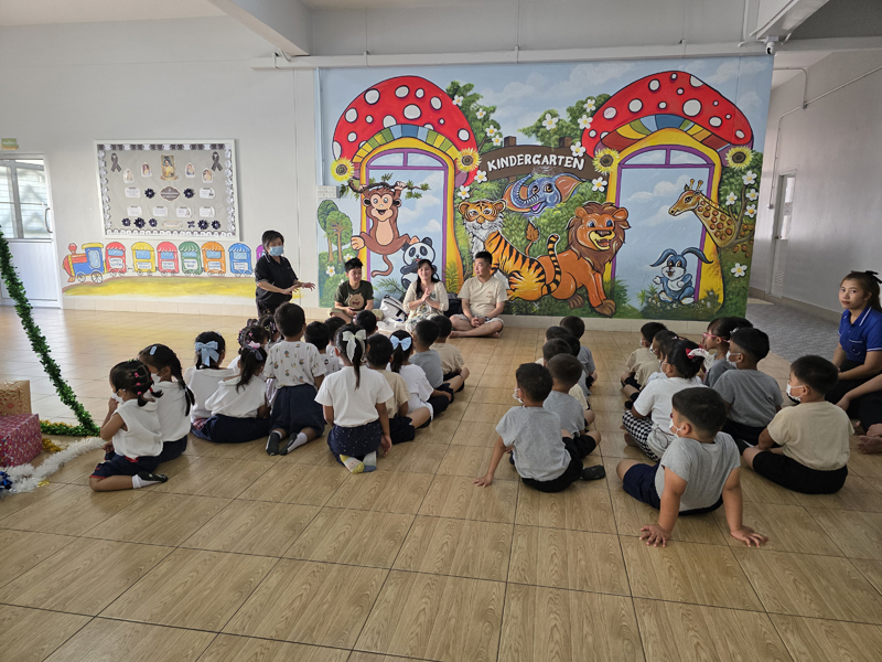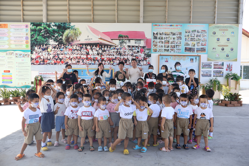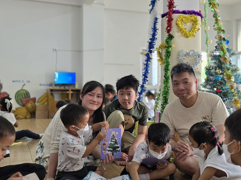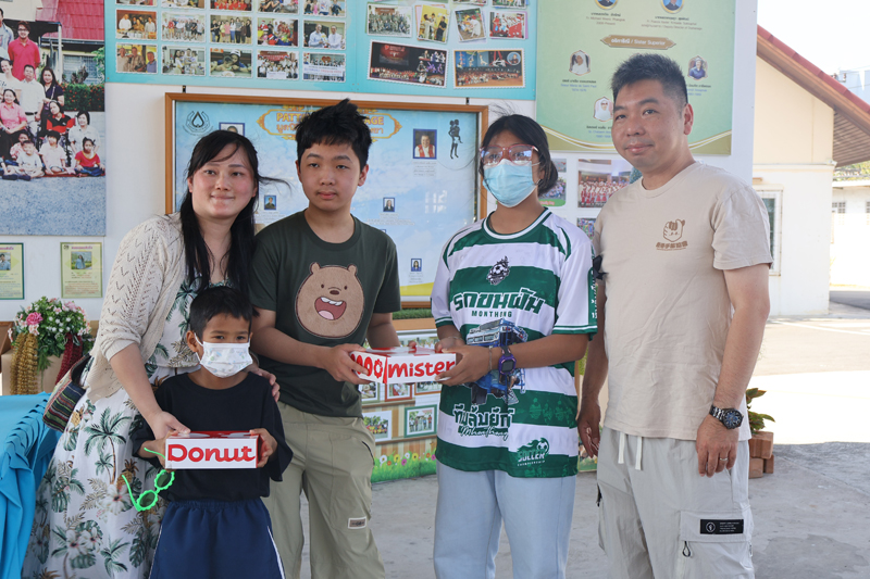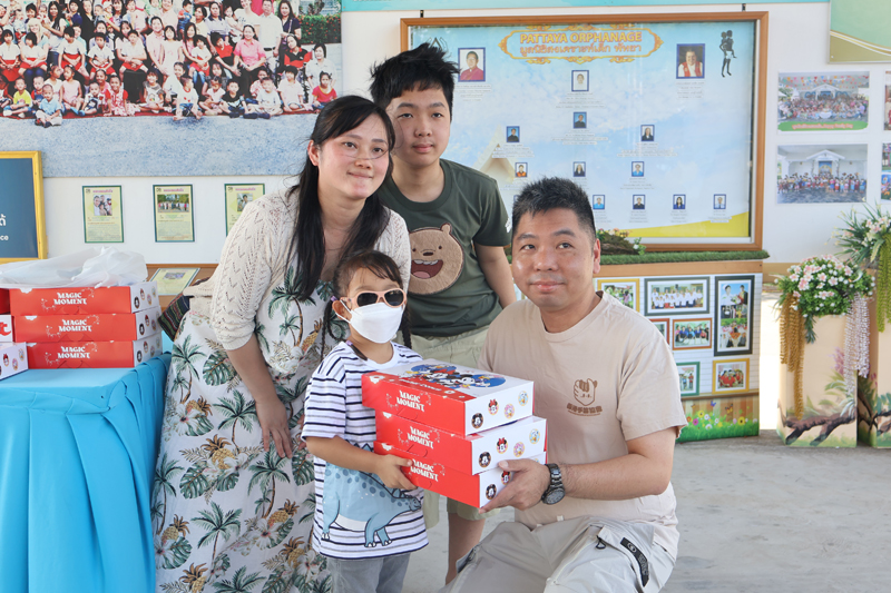 ..The Chung Family of Mr. Wilson, Mrs. Carina, and their 13-year-old son Alston from Hong Kong, for paying their first visit to the Pattaya Orphanage, getting to know our work, and supporting our children as well as disabled persons with various necessities, including donuts.. On this occasion, the family held art activity with the creation of greeting cards for kids in preschool levels and played music with hands for them. In turn, the children danced along music for the guests.. Thanks and best wishes for the New Year 2026 and always..