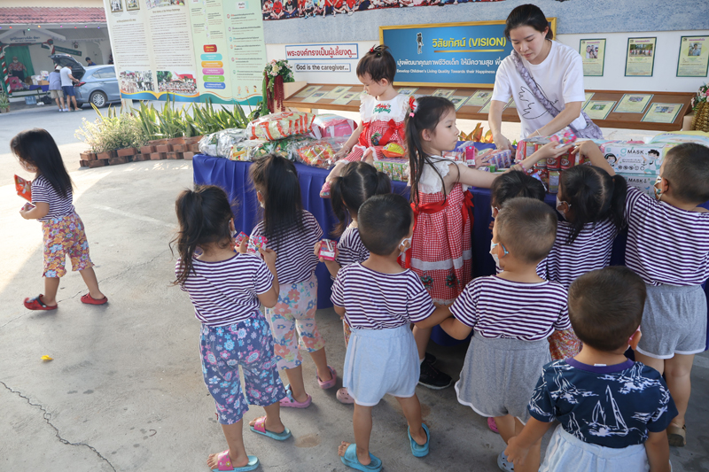 …The Sirithatthamrong family, including little Ava, for marking Young Patrakamol Sirithatthamrong, or Nong Eve’s birthday anniversary with their first visit to the Pattaya Orphanage, a donation of various necessities, including baby care products, and the handing of refreshments to children from toddler’s age and older.. Many happy returns of the day to our Birthday Girl.. Thanks and best wishes to all of you..