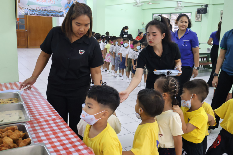 ..The family of Mr. Naphat Fukiattisuth, along with Ms. Naphat Charukosol from Bangkok, for supporting the Pattaya Orphanage and Sotpattana School for preschoolers with disabilities once again, this time with a dinner sponsorship for children from toddler’s age and older, including disabled persons and boarders of our Deaf School.. Thanks and best wishes to all of you..