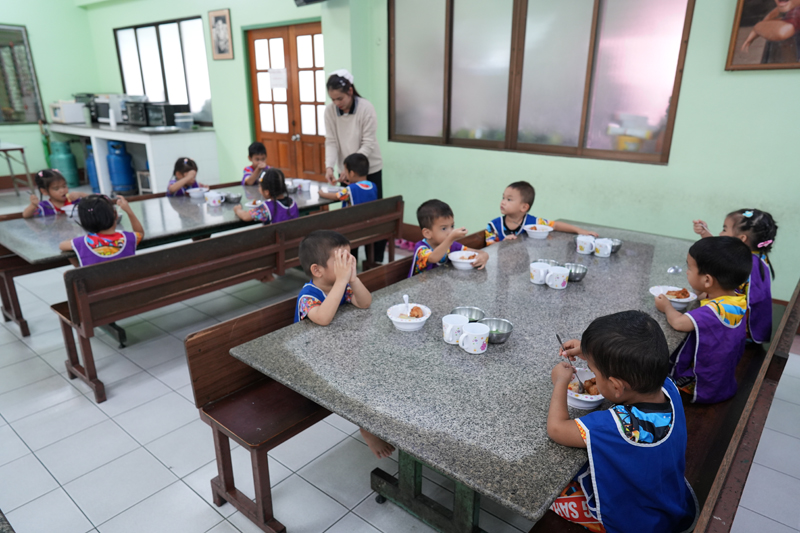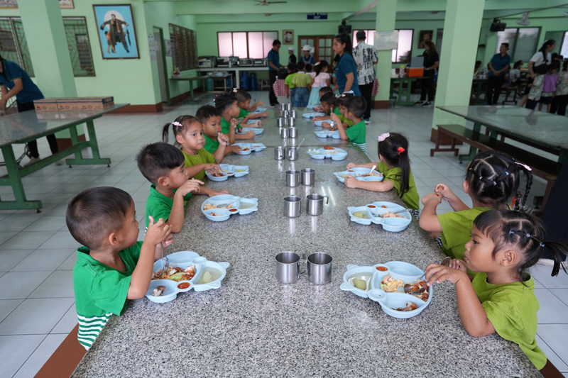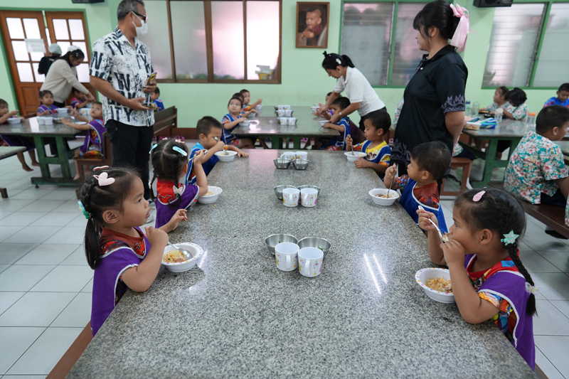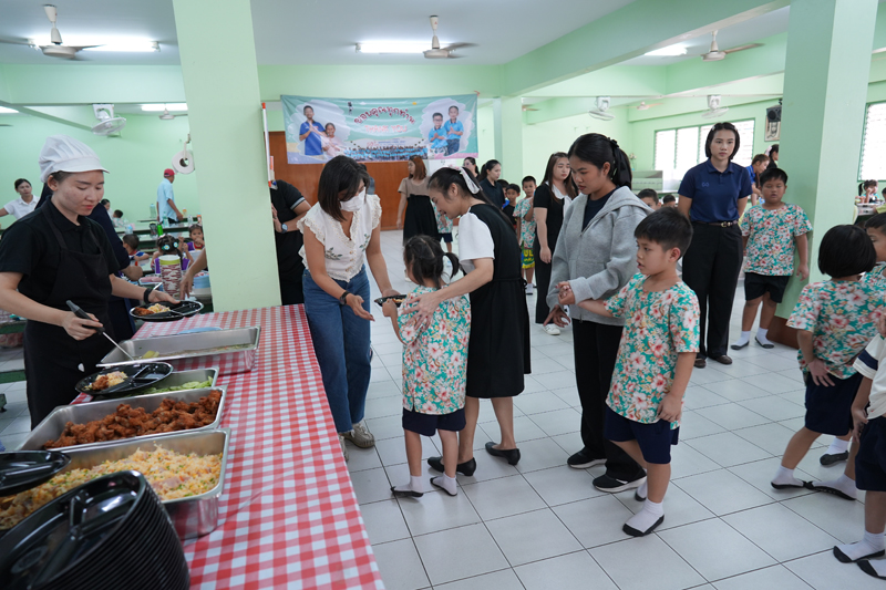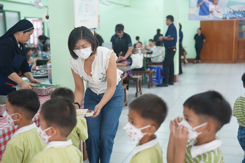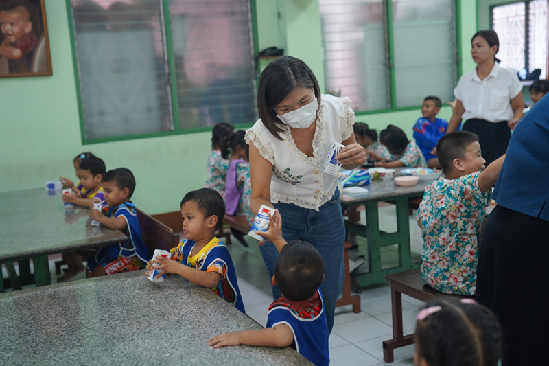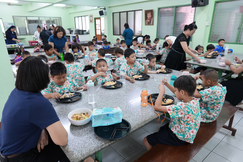..The family of Ms. Jutima Chaipakdee, along with Mr. Phusit Sridulayakul from Bangkok, for paying another visit to the Pattaya Orphanage.. On this occasion, the guests donated various necessities, including baby care products, as well as sponsored a lovely lunch for the children from toddler’s age and older, as well as kindergartners of our Sotpattana School for preschoolers with disabilities.. Thanks and best wishes to both of you..