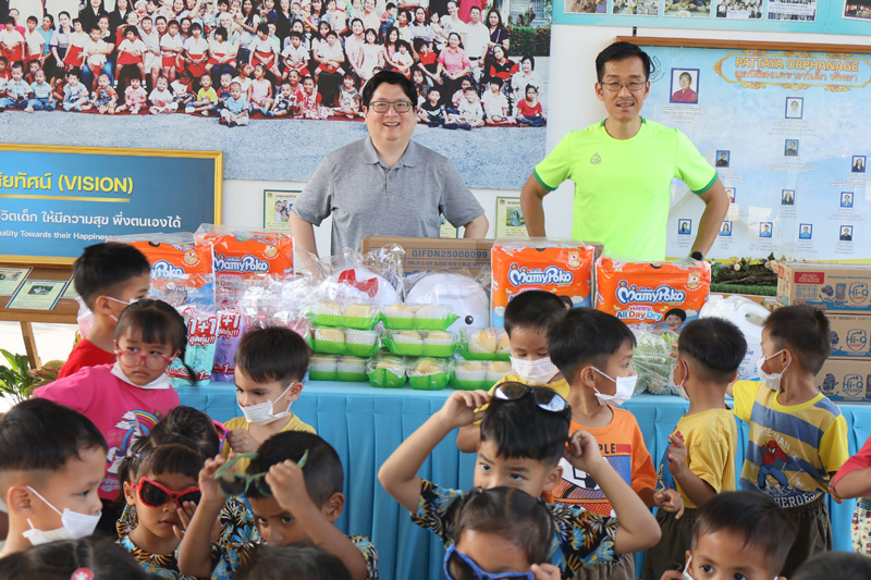 ..Mr. Kvit Limkrailassiri and Mr. Charles Liu, for paying another visit to the Pattaya Orphanage and supporting our children and disabled persons with various necessities, including baby care products and fresh fruits.. Thanks and best wishes to both of you..