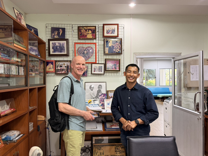 ..Former resident Mr. Audthaphol Samarnpak, for paying his first visit to the Pattaya Orphanage, bringing along Mr. Bret Staehling from USA. to get to know our work, and contributing various necessities, including rice grains, in support of our daily care for children and persons with disabilities.. Thanks and best wishes to both of you..