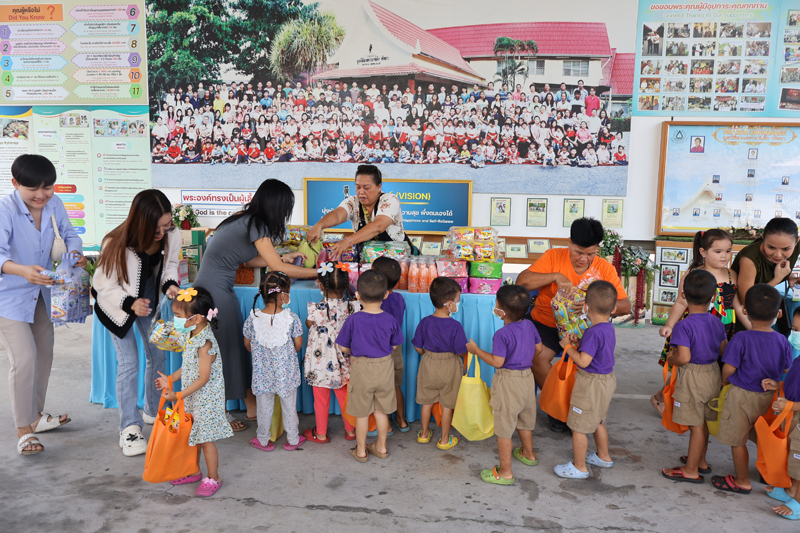 ..Ms. Wanida Jaiyai and family, Banglamung, for returning to the Pattaya Orphanage to share joy by sponsoring a lovely morning snack for our children from toddlers’ age and older, while donating various necessities including rice grains, instant noodles, canned fish, cooking oil, tissue paper, laundry detergent, UHT milk, various snacks, and baby care products in support of our children.. Grateful thanks for your continued kindness and best wishes to all of you..