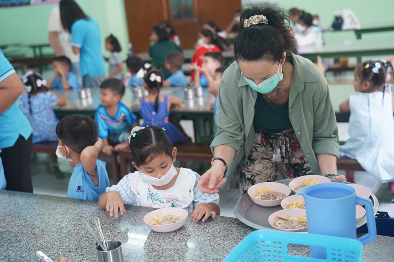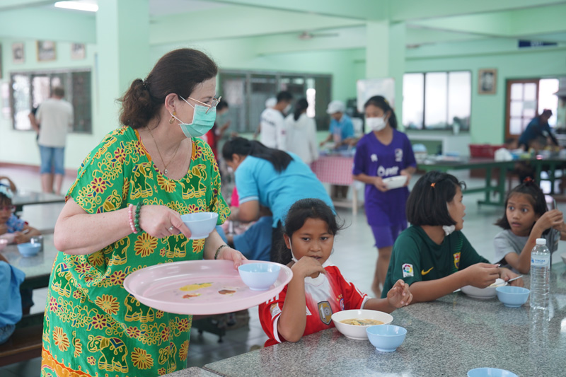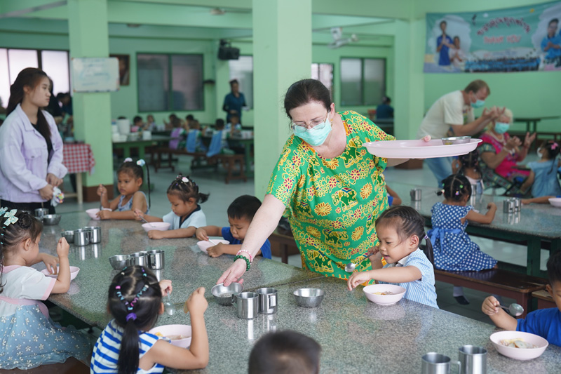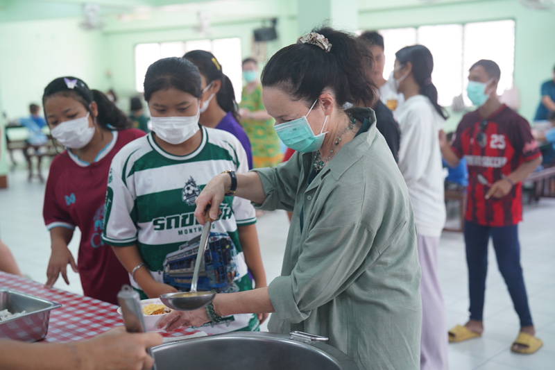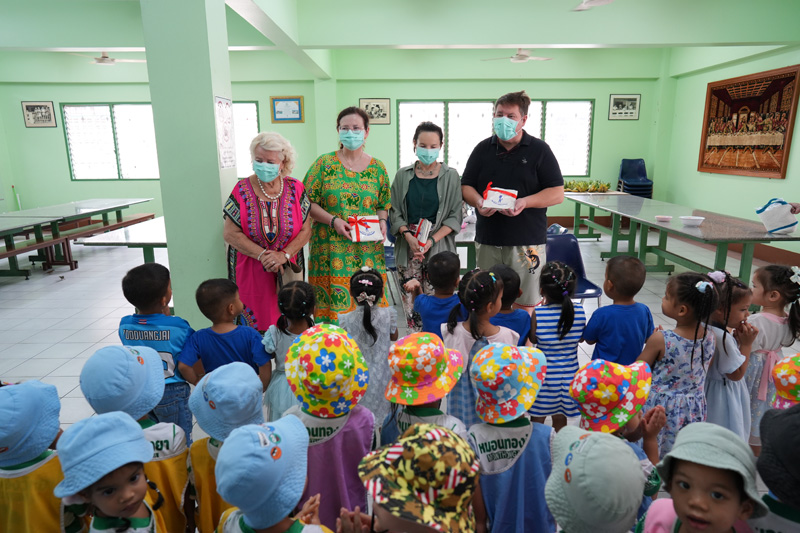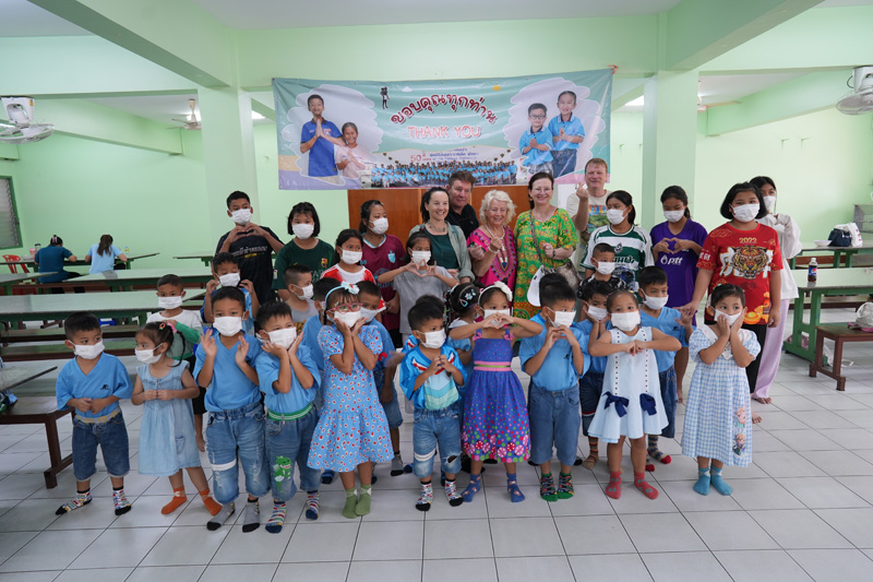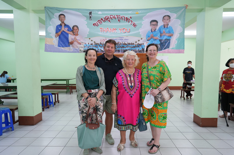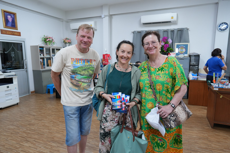 ..The family of Mr. Charles Bertschy from Switzerland, including his mother Agnès and Ms. Aline Sager, for paying another visit to the Pattaya Orphanage, bringing along Khun Charles’ sister Anne-Catherine to get to know our home, serving lunch to the toddlers and older kids, including disabled persons in our care.. Our guests also donated colored pencils to the children.. Thanks and best wishes to all of you and your friend Bernard Mueller who helped book the meal once again..