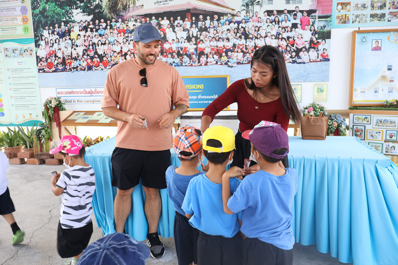 ..Ms. Sirima Kanthaisong and Mr. Beau Williams from Banglamung, for making merit at the Pattaya Orphanage during their first visit by handing ice cream to our children from preschool age and older.. Thanks and best wishes to both of you..