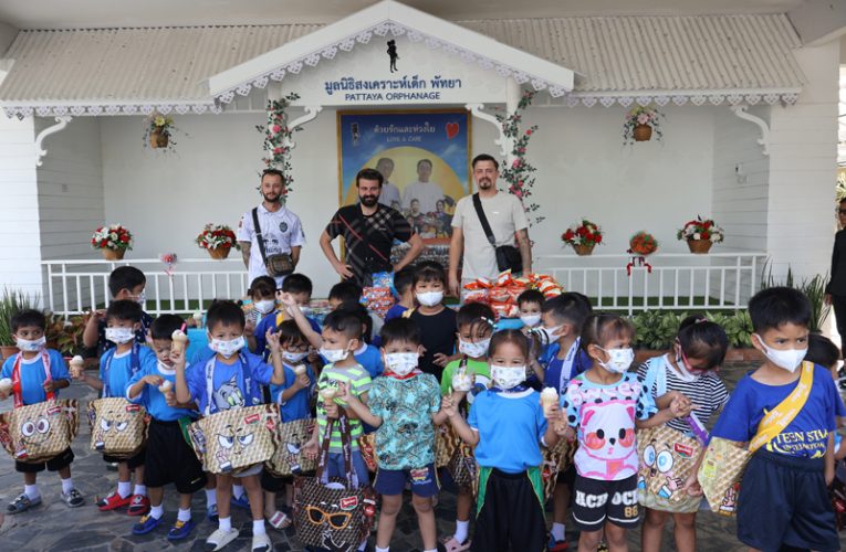 ..The party of Mr. Langer, Mr. Blok and Mr. Kleber, for making merit at the Pattaya Orphanage during their first visit and the handing of snacks to kids from preschool level and older.. Thanks and best wishes to all of you..