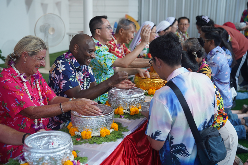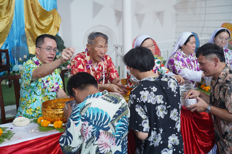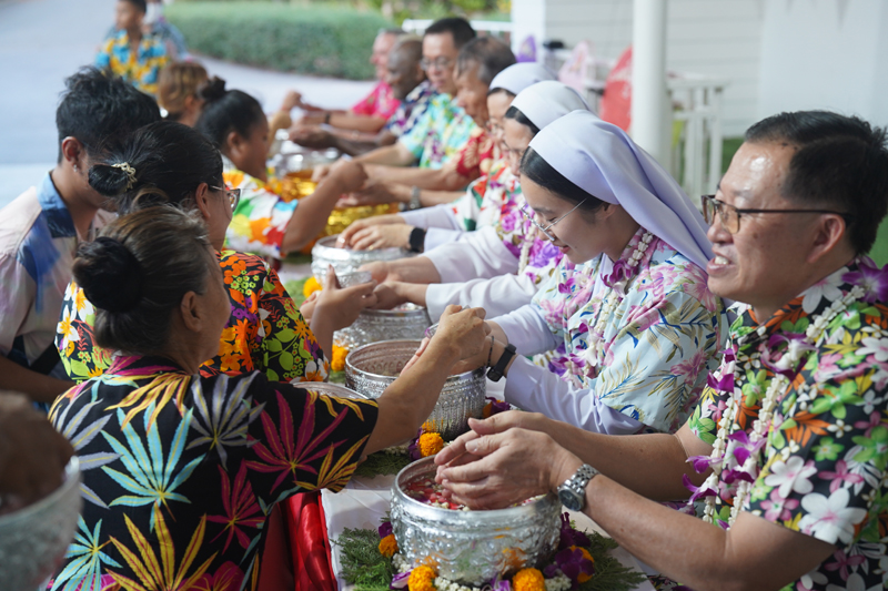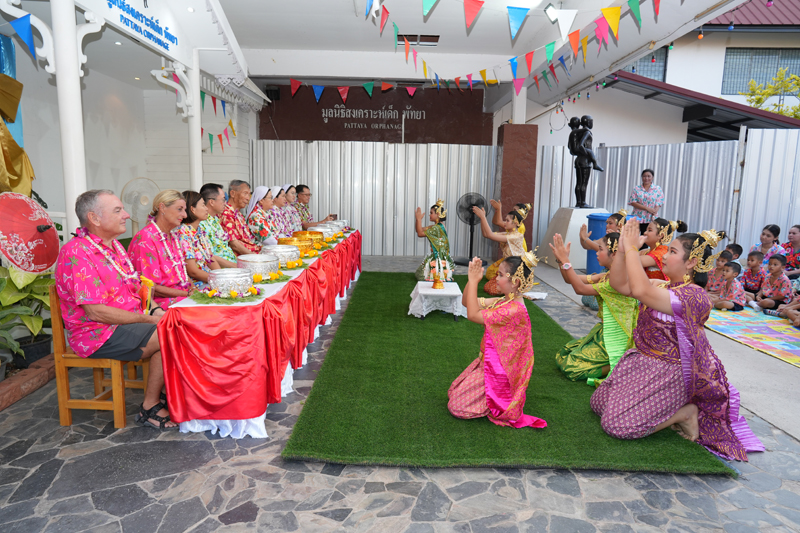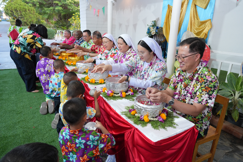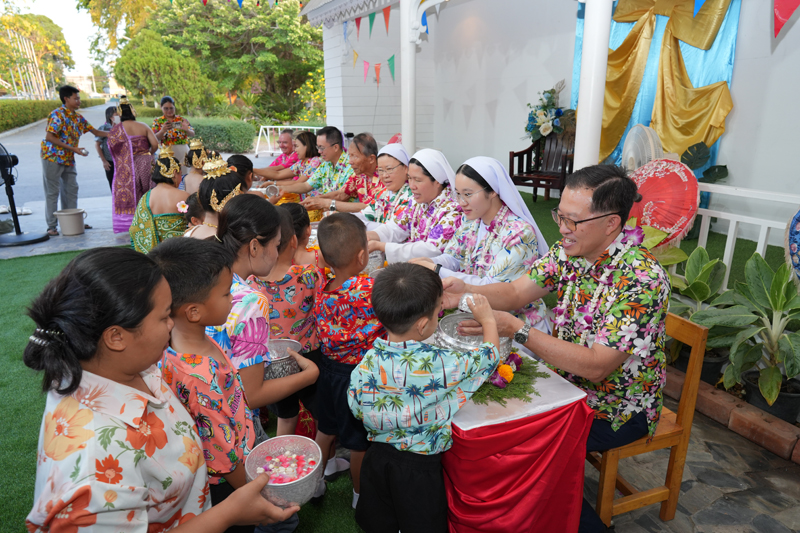 Members of the Pattaya an event held Orphanage family gathered to observe the Thai New Year through our annual Family Day 2026, every year in an atmosphere filled with smiles and warmth, beginning this year with a graceful Baisri Su-Kwan dance performed by our primary and lower-secondary students to welcome honored guests and family members, followed by the traditional water-pouring ceremony where child representatives presented hand garlands to Fr. Michael Weera Phangrak, the presiding officer, as well as the Sisters and our special guests, to express gratitude and receive Thai New Year blessings, before concluding with an exhortation from Fr. Weera, who encouraged everyone to remain strong in spirit and keep their hearts as cool and refreshing as water despite the summer heat, as we all shared a simple yet joyful dinner together..